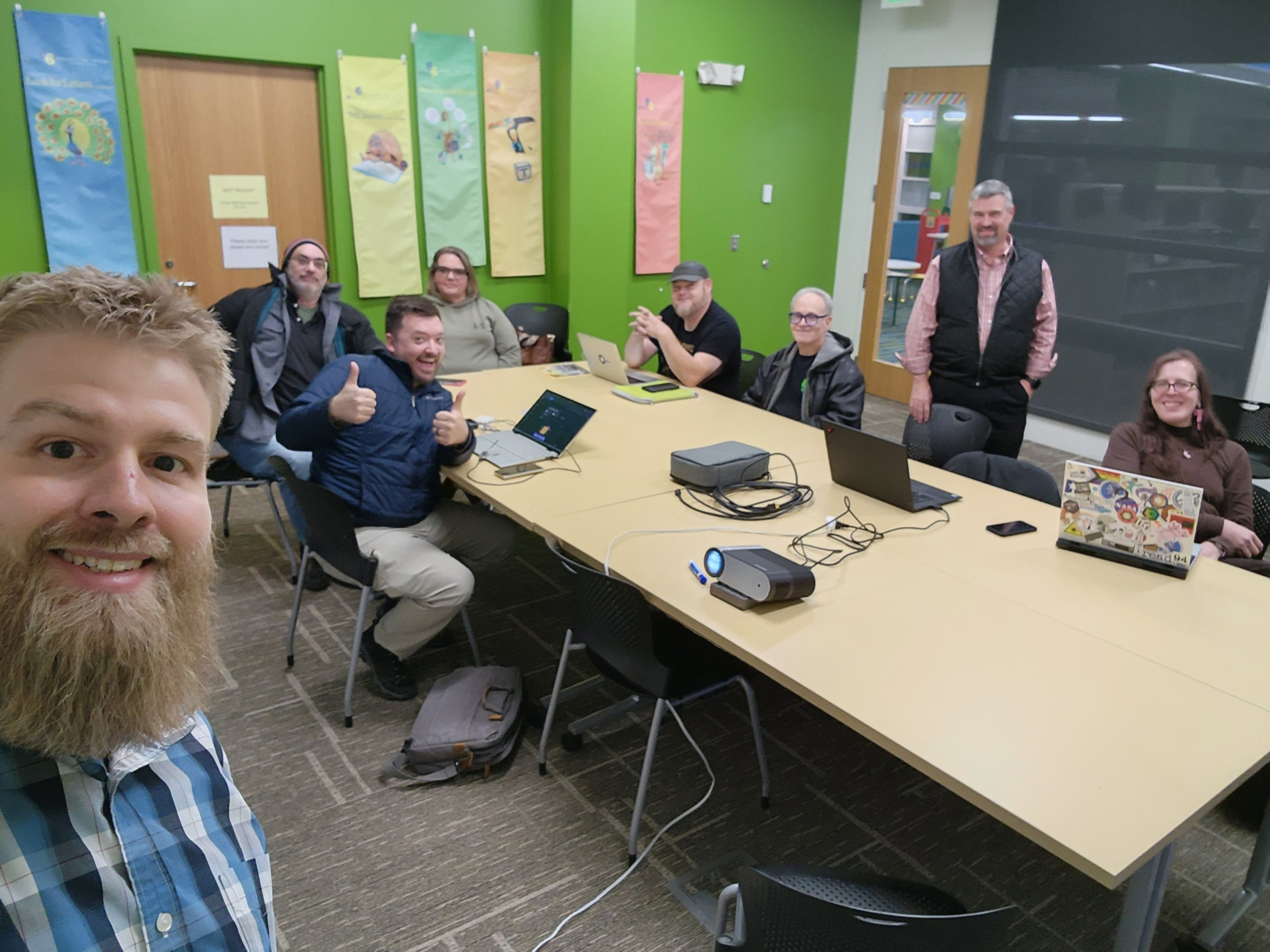 I already have the room reserved! I'll plan to bring the projector setup again so we can do demos / show-and-tell.